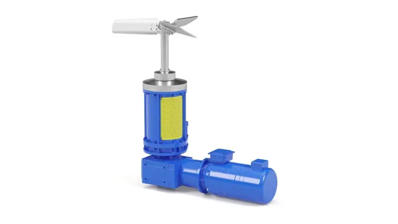 工作原理为:通过在储罐底部安装搅拌装置,利用短轴设计和高速旋转的搅拌头来产生强烈的剪切力。搅拌头通常包括一个或多个快速旋转的切割刀片或涡轮,这些部件可以迅速地将液体或固体物料分解成细小的颗粒,并将其均匀地分散在液体介质中。